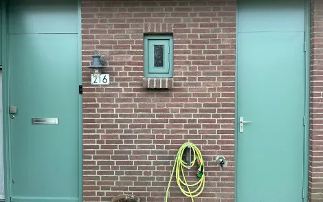 Voordeur + rechts de inpandige berging: