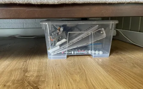 Onder de bank liggen batterijen voor de kaarsen en handleidingen: